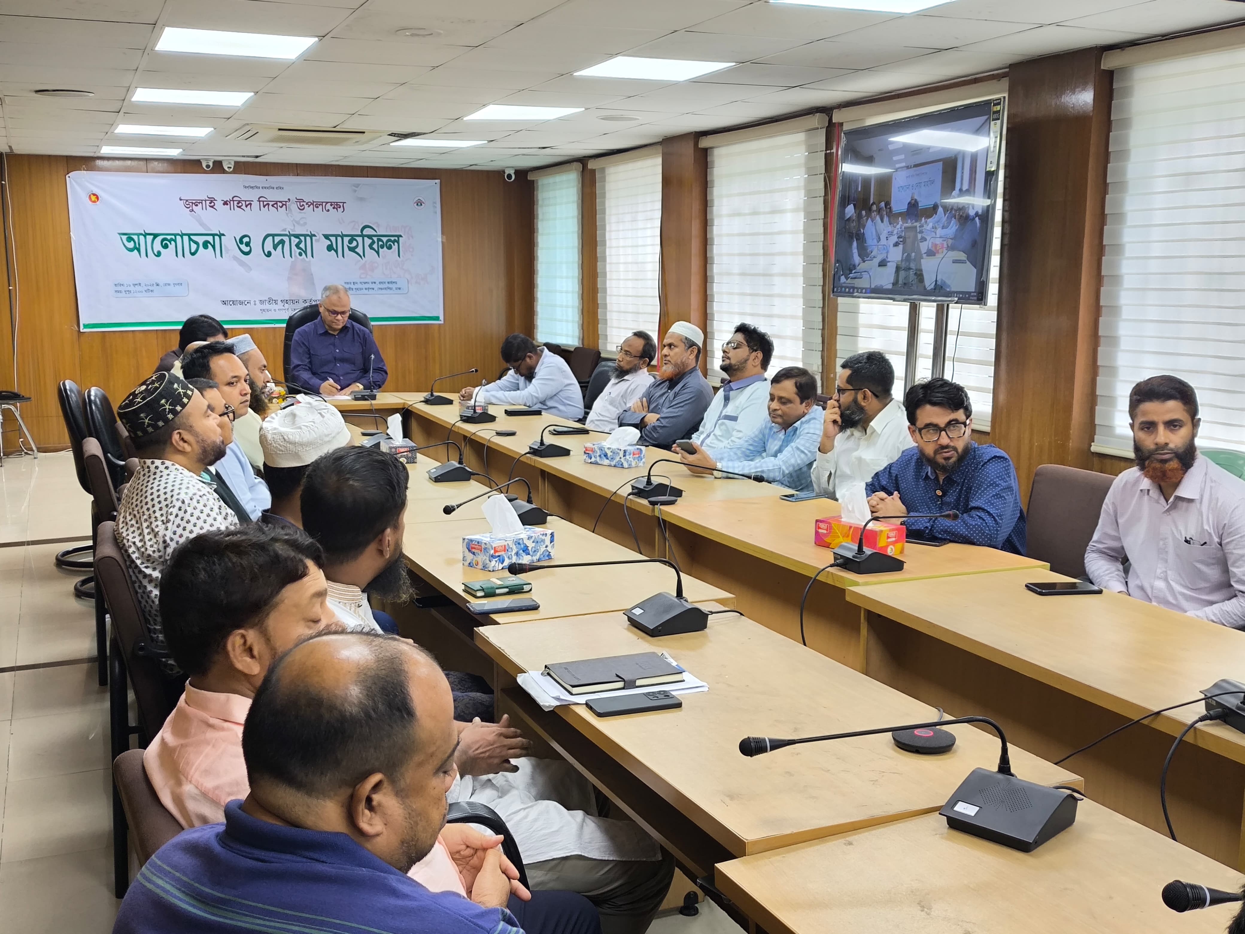 জাতীয় গৃহায়ন কর্তৃপক্ষের আয়োজনে "জুলাই শহিদ দিবস-২০২৫" উপলক্ষে আলোচনা ও দোয়া মাহফিল ১৬/০৭/২০২৫