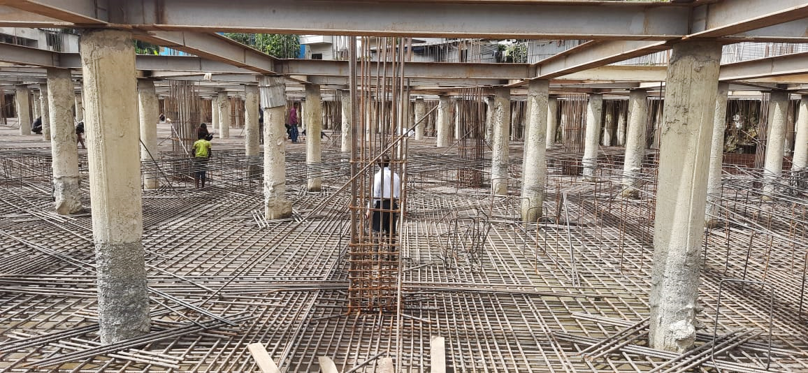 ভবনের ৬০% ম্যাট ফাউন্ডেশনের ঢালাইয়ের সম্পন্ন।ঐ অংশের কলাম ও রিটেইনিং ওয়ালের কাজ সম্পন্ন।